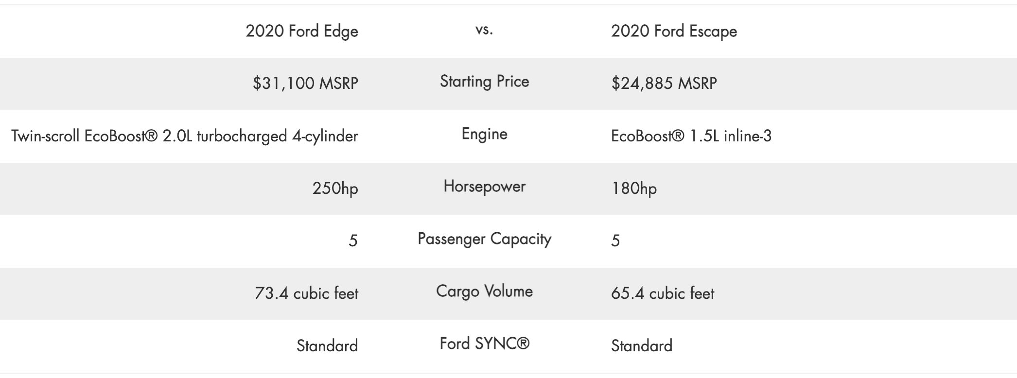 2020 Ford Edge vs. 2020 Ford Escape