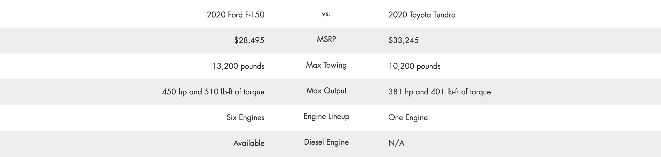 Ford F-150 vs. Toyota Tundra: Engine Specs
