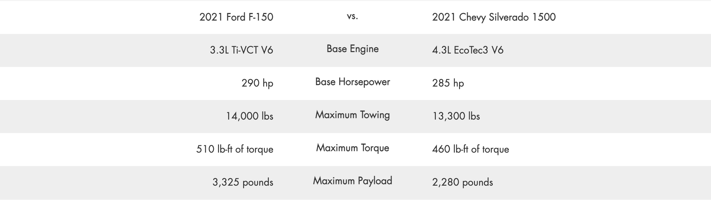 2021 Ford F-150 vs. 2021 Chevy Silverado 1500