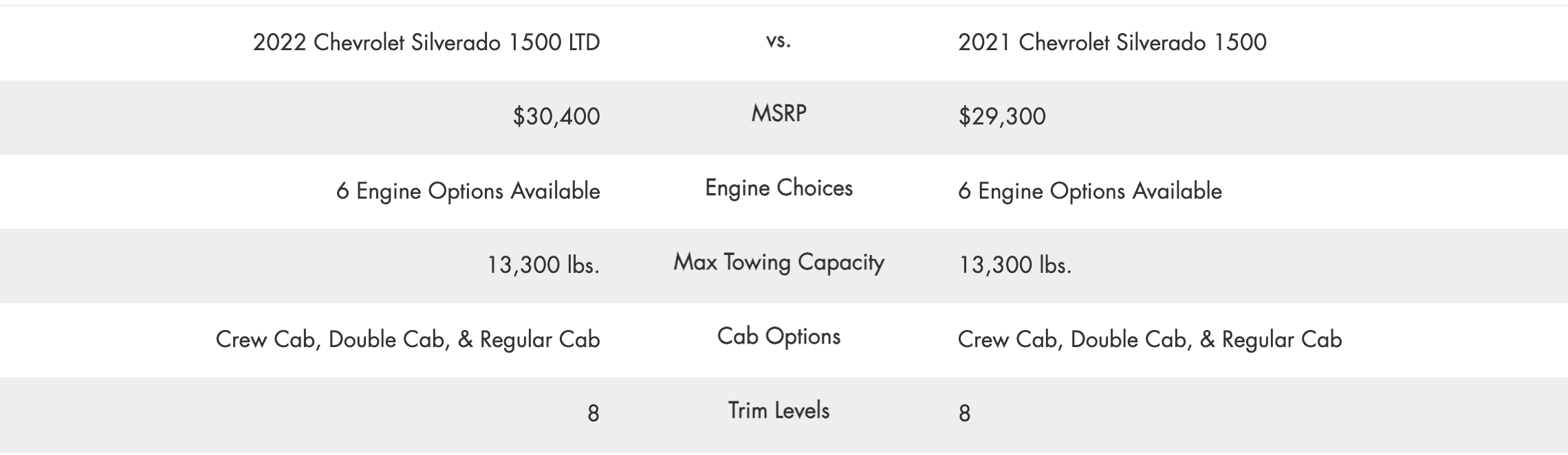 2022 Chevy Silverado 1500 LTD vs. 2021 Chevy Silverado 1500: Engine Options & Cab Configurations