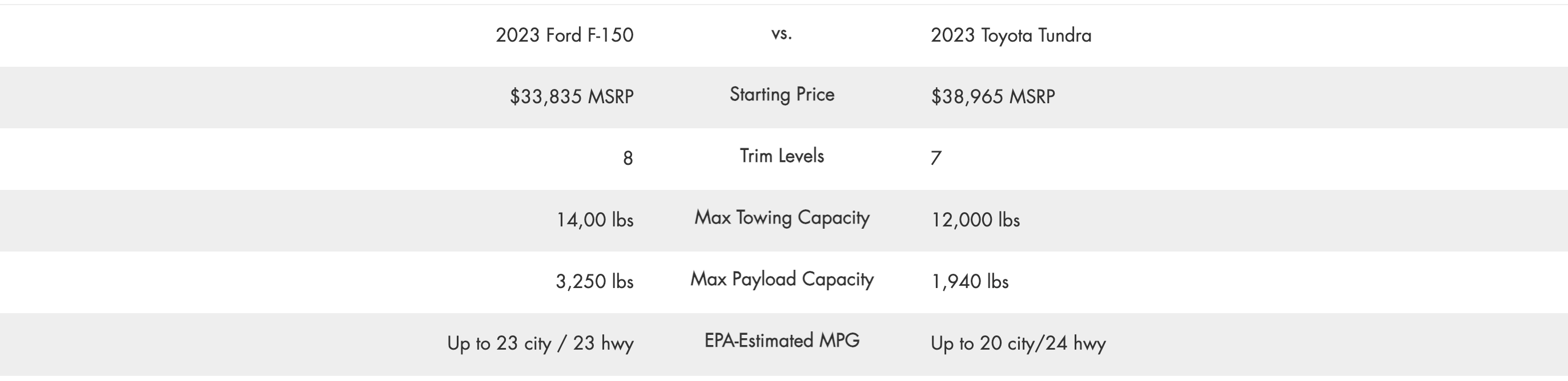 2023 Ford F-150 vs. 2023 Toyota Tundra