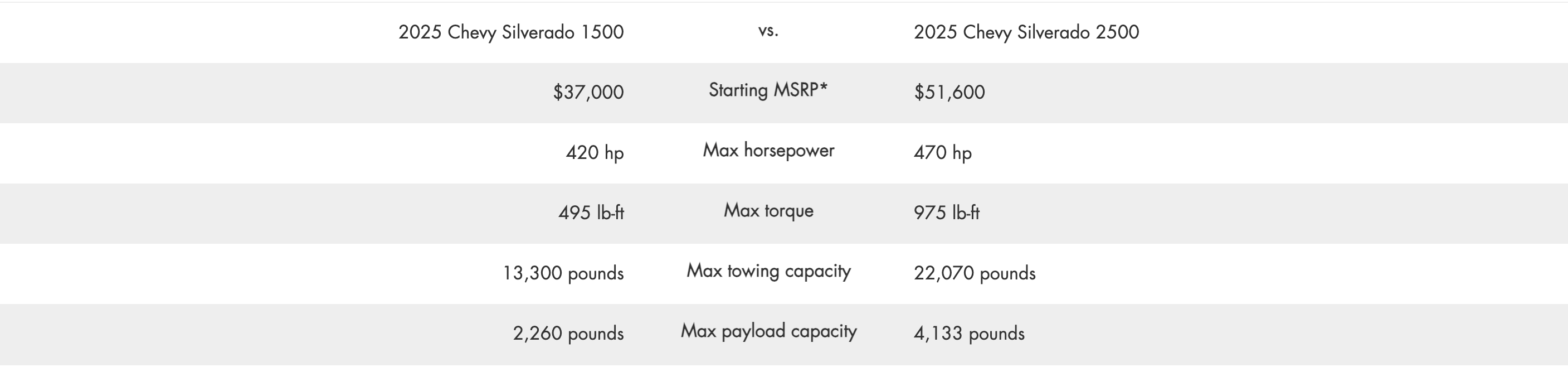 2025 Chevy Silverado 1500 vs. Chevy Silverado 2500