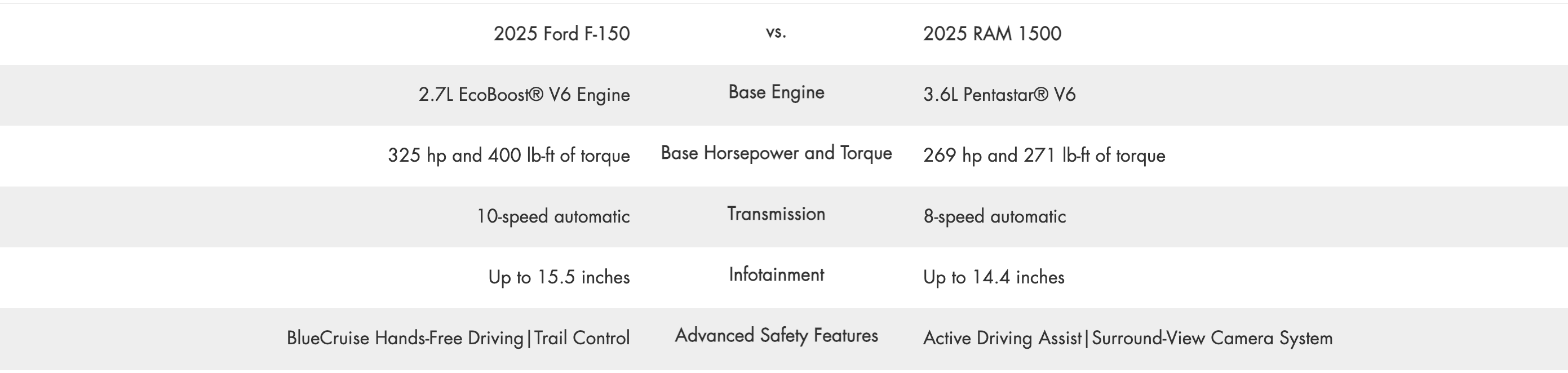 2025 Ford F-150 vs. RAM 1500 Trim Levels