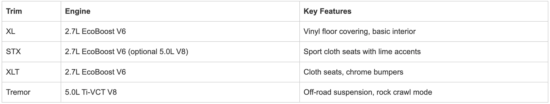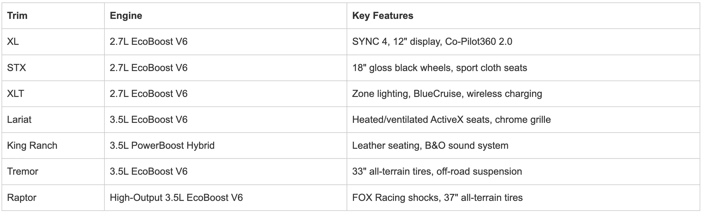 For Wichita drivers seeking adventure, both Tremor and Raptor trims deliver impressive off-road capability with all-terrain tires and off-road-tuned suspensions. Whether hitting the trails or hauling weekend gear, these trims are built for rugged performance.